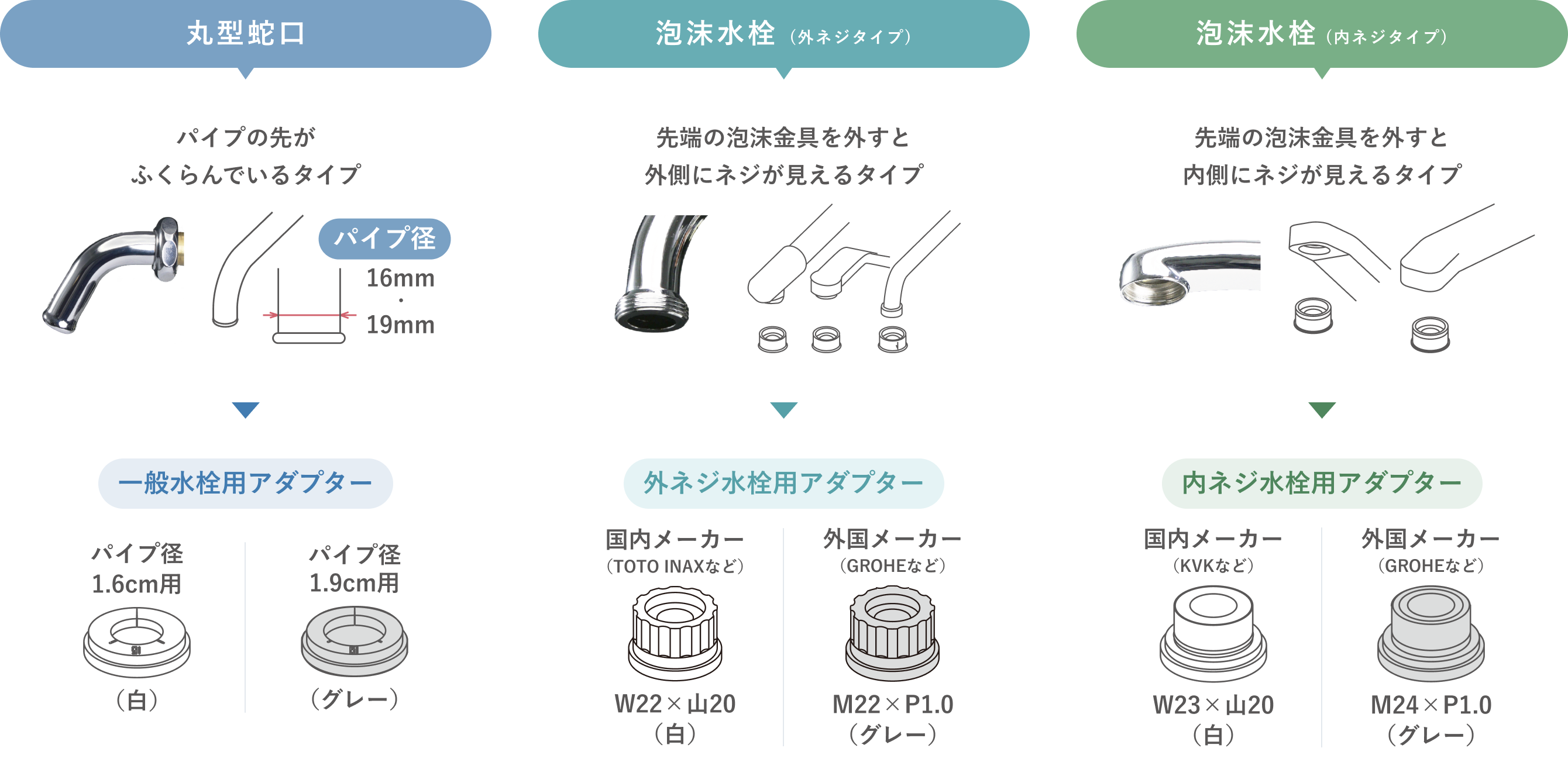 ゴクリアは同タイプの中でも高い浄水力を、コンパクトなサイズで実現。賃貸物件にお住まいの方もご利用いただけます。 取り付け可能な蛇口をチェック